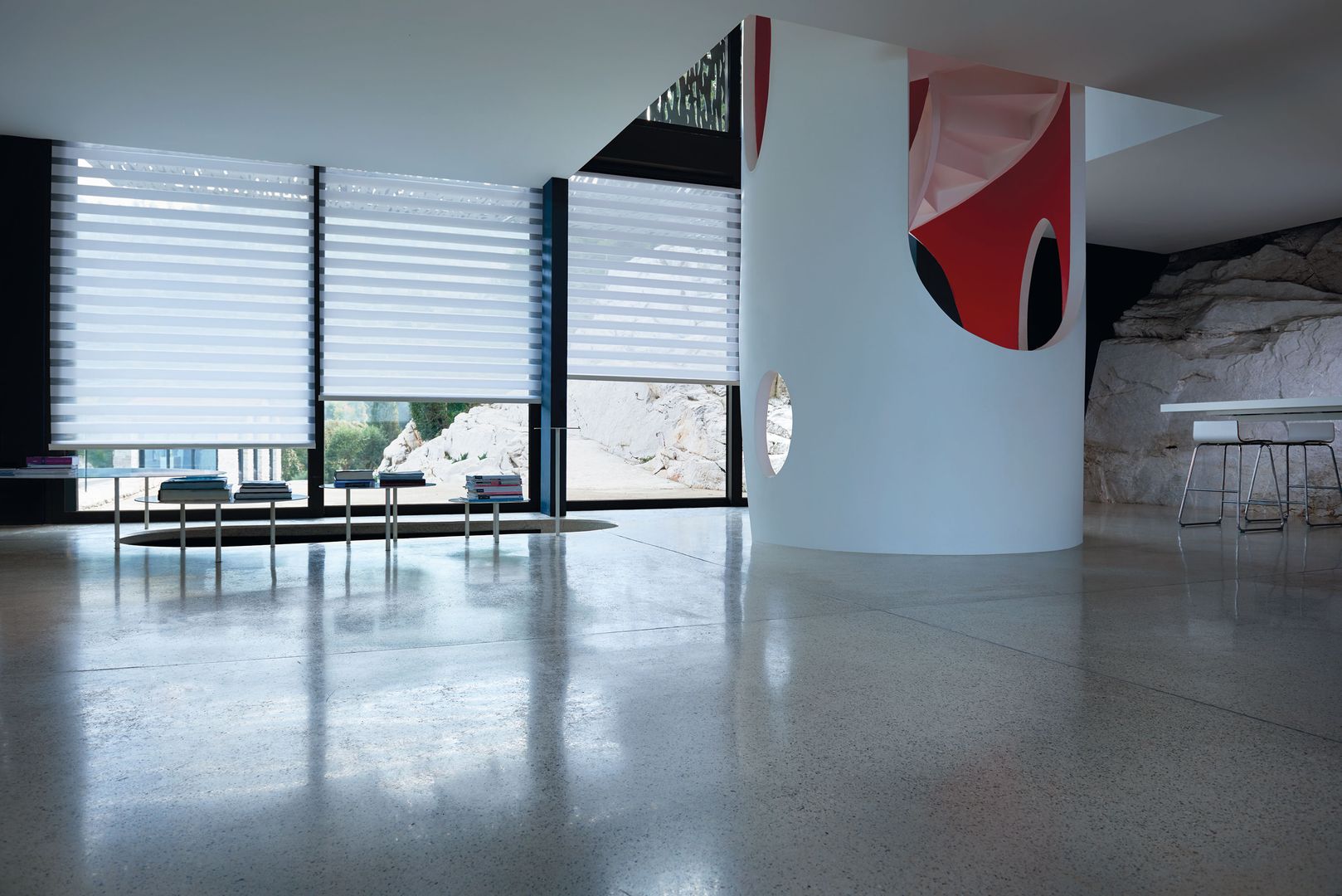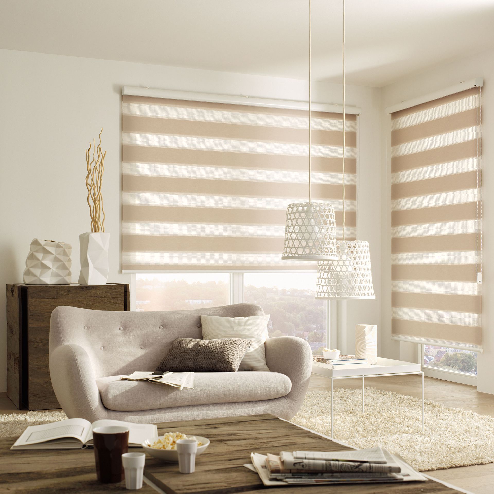Das Rollo nimmt daher im Interior Design genauso eine wichtige Funktion ein wie es mit einer breiten Palette an Bedienungs- und Montagemöglichkeiten sein Funktionsspektrum seit anno dazumal erweitert hat. Varianten in unterschiedlicher Transparenz sowie innovative Gewebearten bieten einen großen Reigen an Interpretationsmöglichkeiten. Abdunkelung nach Wunsch schaffen dabei unterschiedlichste Lichtdurchlässigkeitsvariationen von durchsichtig bis blickdicht. Spezialgewebe unterstreichen durch ihre Oberflächenstruktur vor allem im Objektbereich ein stylishes Flair. Elektrisch Antriebe und automatische Steuerungen begeistern Hightech-Freaks.